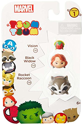 -. Binding : Toy -. Brand : Tsum Tsum -. EAN : 0039897055459 -. Feature : Now you can collect, stack and display a mash-up of all your favorite Disney characters in a totally new, whimsical scale / Pack includes 3 different sized figures (small, medium, and large) / For Ages 6 and up -. Label : Jakks -. Manufacturer : Jakks -. Model : 05545 -. MPN : 05545 -. PackageQuantity : 1 -. PartNumber : 05545 -. ProductGroup : Toy -. ProductTypeName : TOYS_AND_GAMES -. Publisher : Jakks -. Studio : Jakks -. Title : Tsum Tsum Marvel 3-Pack: Rocket/Black Widow/Vision Toy Figure -. UPC : 039897055459 -. Warranty : No Warranty