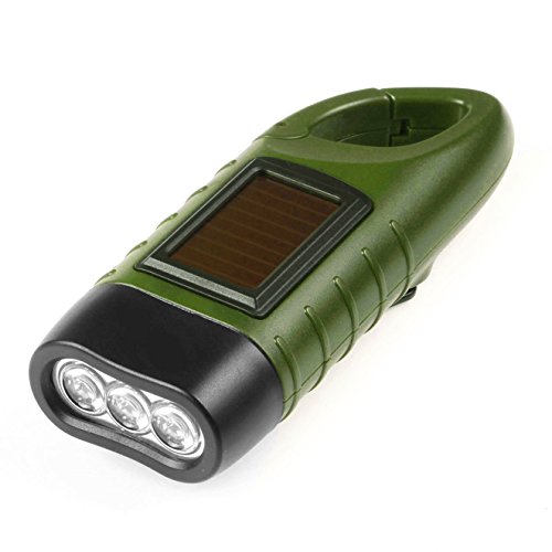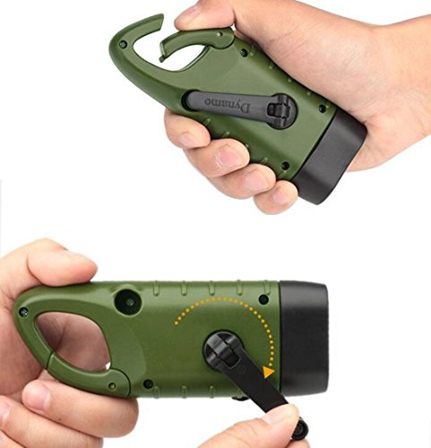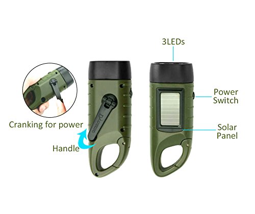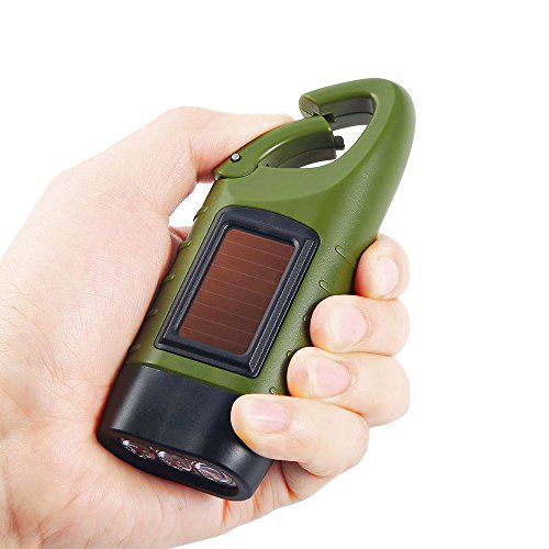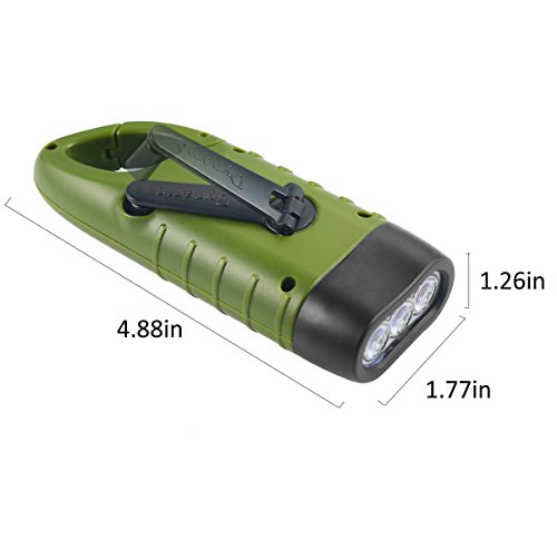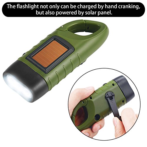 Hand Cranking Solar Powered Flashlight - Wolfyok Rechargeable Emergency LED Flashlight, Dynamo Carabiner Quick Snap Clip Backpack Flashlight Torch for Outdoor Camping, Hiking, Climbing