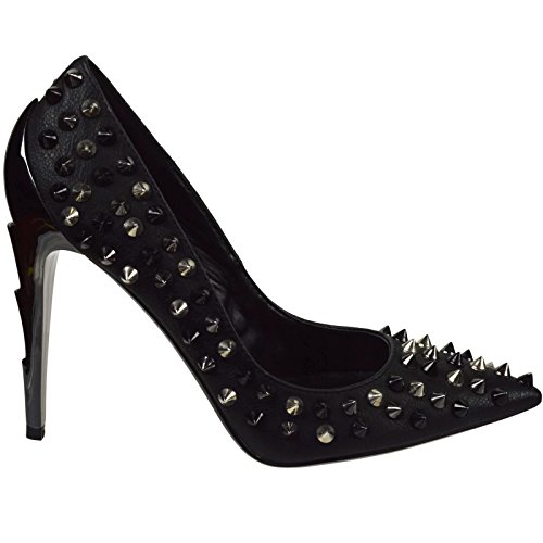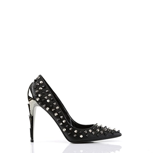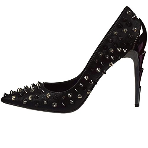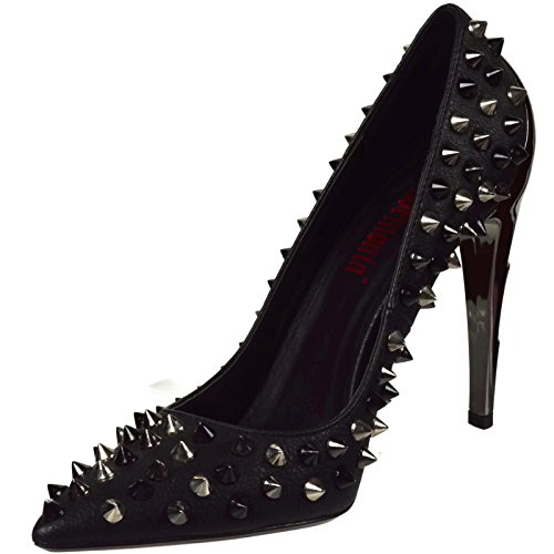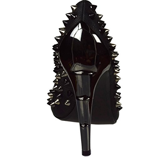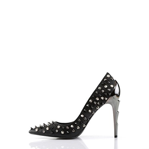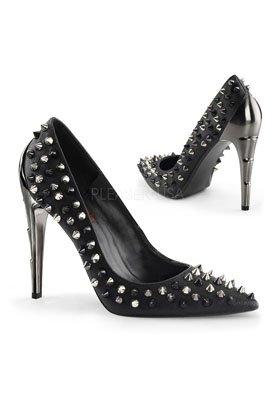 Product DescriptionHeel Height: Approx. 4 1/2' Tall. 4 1/2"(11.5cm) Chrome Lightning Bolt Heel Pump Featuring Two-Tone Spiky Studs On Vamp0