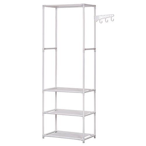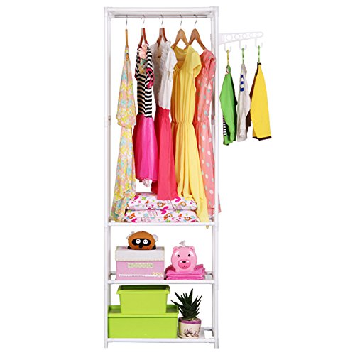 Includes three shelves, a hanging bar and coat hanger with three hooks