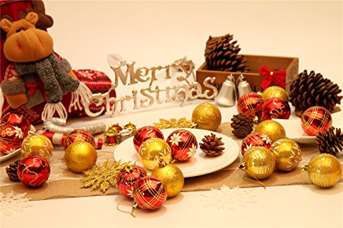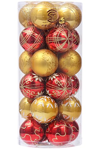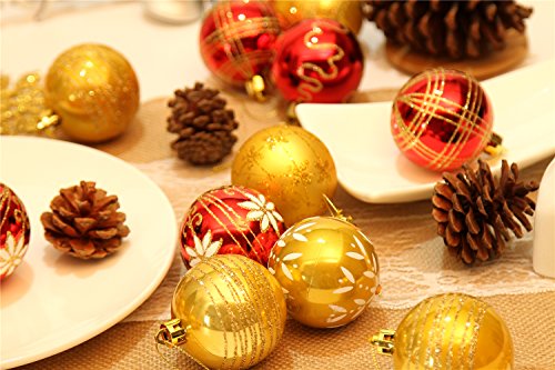 Sea Team 60mm/2.36" Delicate Contrast Color Theme Painting & Glittering Christmas Tree Pendants Decorative Hanging Christmas Baubles Balls Ornaments Set - 24 Pieces (Gold & Red)