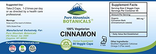 -. Feature : Made with Premium Certified Organic Cinnamon Bark (Naturally Grown Cinnamomum Cassia) / TRUSTED: - MADE with ORGANIC CINNAMON BARK - Our Kosher certified capsules are filled ONLY with Organic Cinnamon and flax seed and NOTHING ELSE. / Our CINNAMON CAPSULES are VEGETARIAN, KOSHER and GLUTEN FREE. Feel Secure Knowing You're Only Putting the Absolute Best Product in Your Body, Made with NO Harsh Preservatives, Fillers or Flowing Agents - NO Sodium Benzoate, NO Magnesium Stearate, NO GMOs / 100% MANUFACTURE'S MONEY BACK GUARANTEE - Try the Best - Risk Free! These CINNAMON CAPSULES and ALL Products from Pure Mountain Botanicals™ are covered by a no-questions asked money back guarantee.