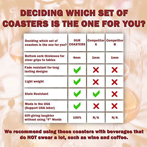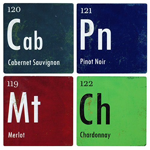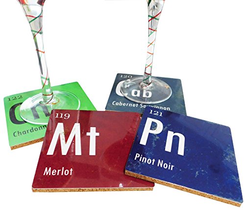 Coasters By COASTER LABS Set of 4 pieces: Wine Periodic Table - Merlot, Chardonnay, Pinot Noir, Cabernet Sauvignon - Cork for Counter, Sofa/ Coffee Table - Cool Novelty Gift Accessories