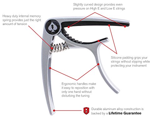 Kava Audio Aluminum Alloy Capo for Acoustic Guitar, Silver
