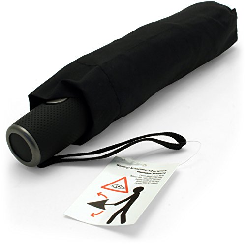 -. Feature : Aus wasserabweisenden, hochdichtem Stoff, mit winddichten Glasfaserrippen. / Automatisches Öffnen und Schließen des Schirms per Knopfdruck / Rutschfester Gummigriff; einfach zu halten bei Wind / Stabile Rippen verhindern Umstülpen des Schirms bei starken Winden. / Durchmesser, wenn offen: 37 Zoll mit einer kompakten Länge von 11 Zoll. Kommt mit Aufbewahrungshülle, perfekt für Reisen.