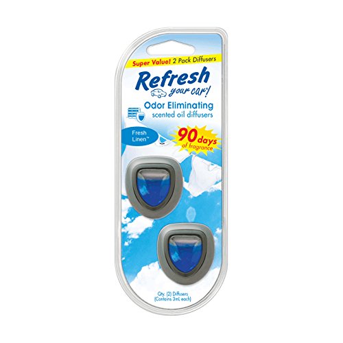 Once attached to your vent, Refresh Your Car Mini Diffusers allow you to adjust the fragrance level of your car. The smaller size allows you to put them in more areas of your car, without blocking the flow of air. The New Car scent is a masculine yet fresh and clean scent suitable for any vehicle. The New Car scent brings you back to the day your car was new and fresh off of the line.