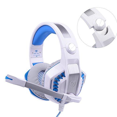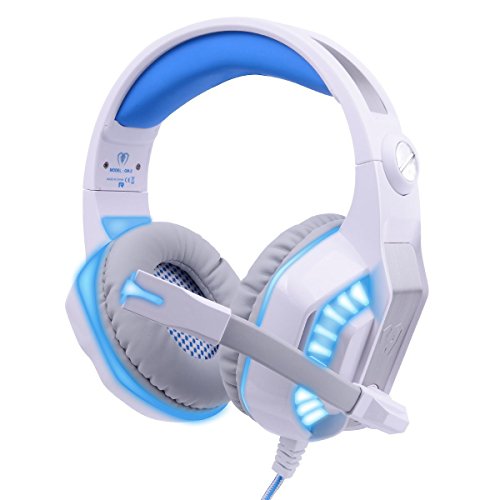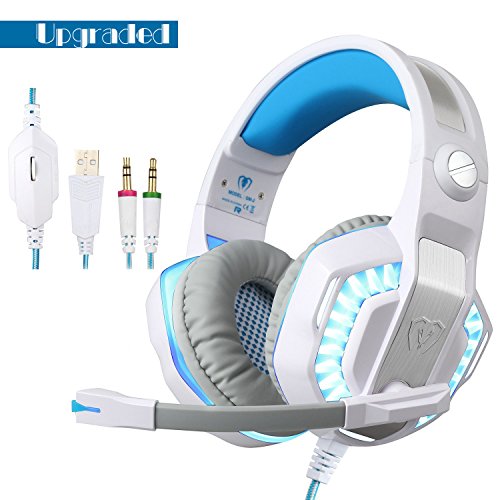 Gaming Headset with Extra 3.5mm Splitter Cable, Noise Cancelling Headphones with Microphone Volume Control and LED Light Xbox One Headset for PS4, PC, Mac, Computer-White