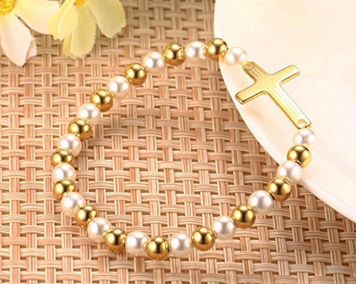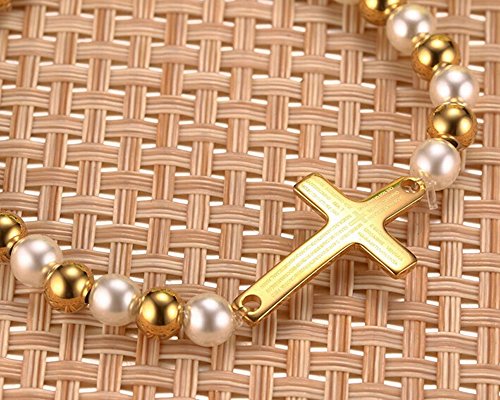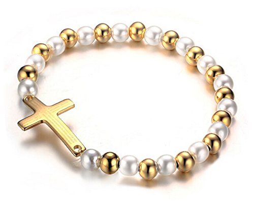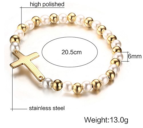 -. Title : B.Z La Vie Armbänder Kreuz 20.5CM Vergoldet Schmuck Perle 6mm Edelstahl Geschenk