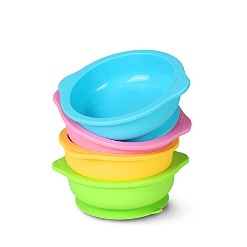 The stay-put suction base helps prevent spills and avoid mess and the material is heat resistant, durable and unbreakable