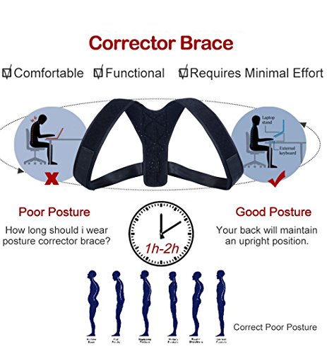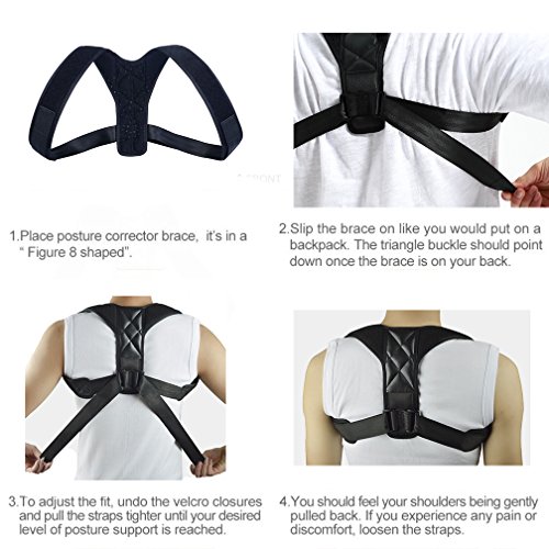- 【HELP YOUR POSTURE】It is a correct posture brace . Your back and shoulders will slowly adjust and you will build muscle memory for the right posture. Fully adjustable get the correct fit get your head spine neck and collar bones naturally aligned.Once fitted, you will instantly feel the elasticated straps pull your shoulders into the correct posture position, straightening your spine