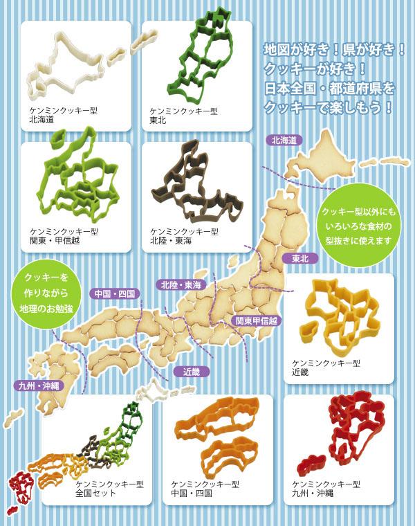 | 地図が好き!県が好き!クッキーが好き!日本全国・都道府県をクッキーで楽しもう!クッキーを作りながら地理のお勉強もできる「ケンミンクッキー」。クッキー型以外にも色々な食材の型抜きとして使えます。47都道府県全部そろった全国セットです。 |