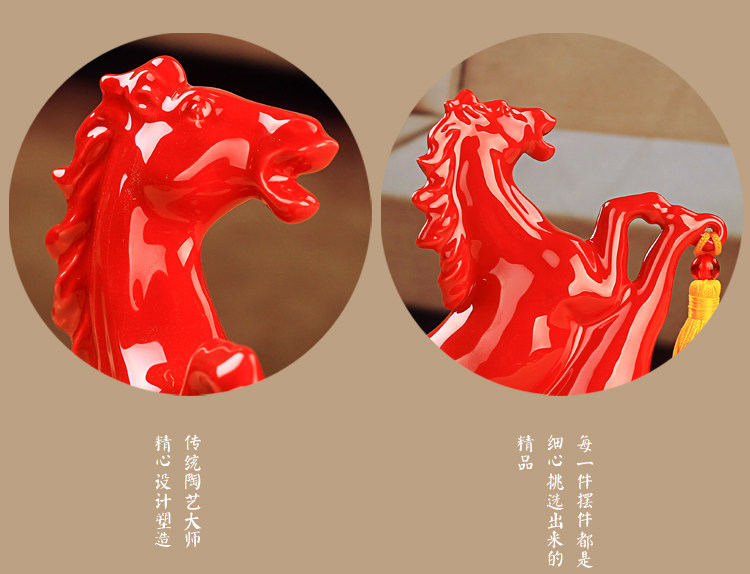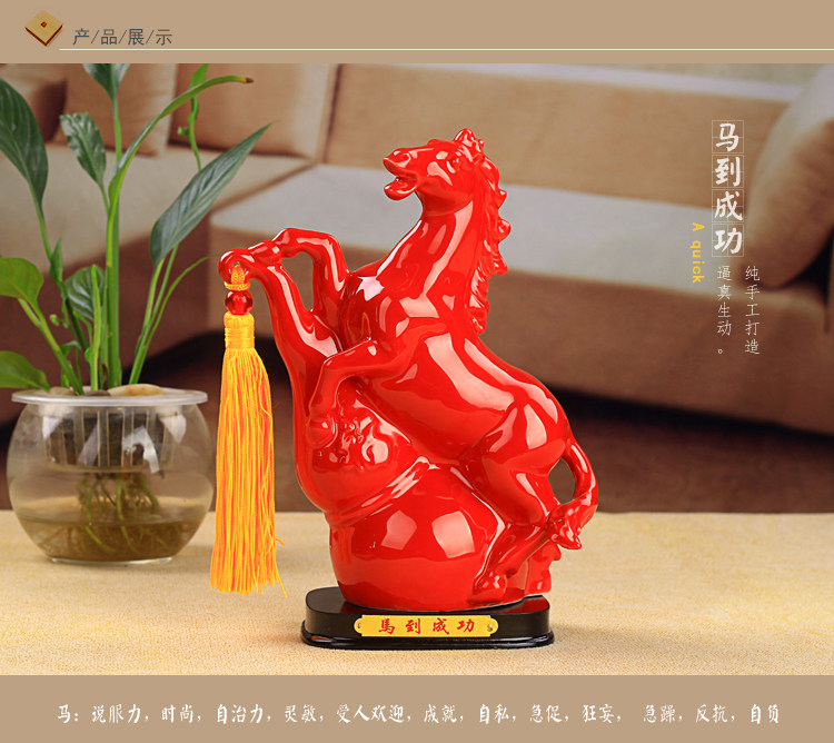 马到成功陶瓷马摆件十二生肖工艺品马到成功红马家居摆设风水送礼