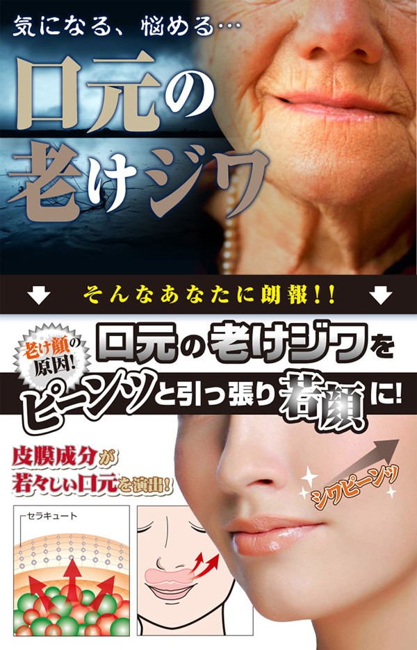 気になる悩める口元の老けジワ。ピーンと引っ張り若顔に! 老け顔の原因!口元の老けジワをピーンッと引っ張り若顔に!セラキュート配合下地。