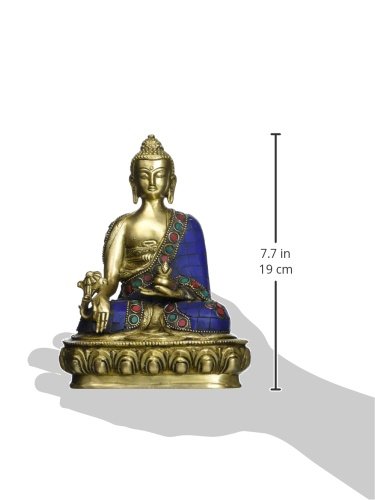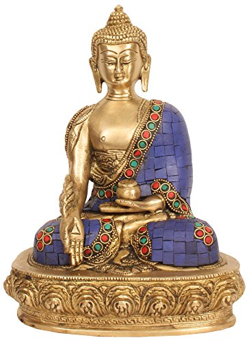 Lapis Buddha of Healing (Medicine Buddha) - Brass and Inaly Statue
