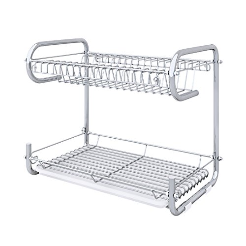 -. Brand : YOMYM -. Color : Silver -. EAN : 0712073830278 -. Feature : 1* Capacity: The top tier rack has sloped sides which is ideal for holding plates can put 17 dishes while the flat bottom rack can be used for mugs and bowls can put more than 20 bowls. / 2* Product dimensions:16.5 x 9.84 x 13.38 inches.The use of space from the bottom to the top: 7.08 inch. / 3* Includes a plastic pan to catch the excess water。Please clean it daily keep cleaning. / 4* The Modern Kitchen Dish Drying Rack and Draining Board complements the smallest to the most elegant kitchens. / 5* Made of durable high quality metal. -. Label : YOMYM -. Manufacturer : YOMYM -. Model : A13 -. MPN : YMYMA13US -. PackageQuantity : 1 -. PartNumber : YMYMA13US -. ProductGroup : Kitchen -. ProductTypeName : KITCHEN -. Publisher : YOMYM -. Studio : YOMYM -. Title : YOMYM 2-Tier Dish Rack and Drainboard Set,Chrome Dish Drying Rack Kitchen Storage Rack -. UPC : 712073830278