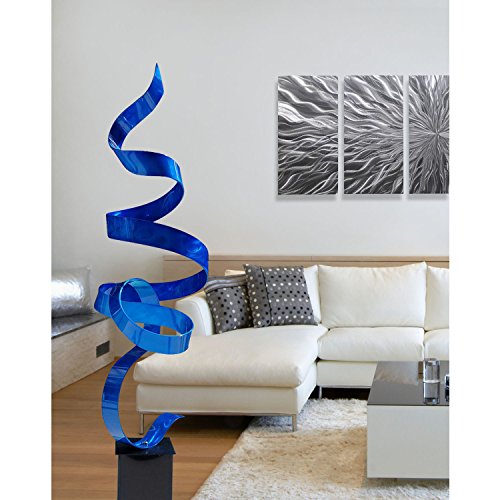 - Sculpted with high quality aluminum, this abstract art piece is built to last and to be enjoyed indoors or outdoors. Perfect for your kitchen, living, dining room, bedroom, or bathroom, this beautiful abstract sculpture will amaze. This freestanding piece also looks incredible as a garden sculpture, lawn sculpture, driveway or front entrance accent, yard décor, and will complement any pool area, outside deck, patio, or porch.