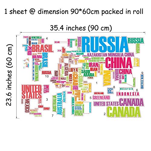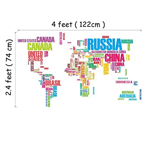 ElecMotive ElecMotive Colorful English Words World Map Wall Art Decal Sticker Vinyl 2.4' H x 4.0' W For Parlour Television Walls Home Decal B00X4FNJP6