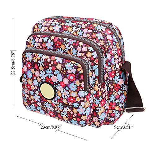 Women Lightweight Cross Body Bag Floral Print Square Nylon Shoulder Bag Outdoor