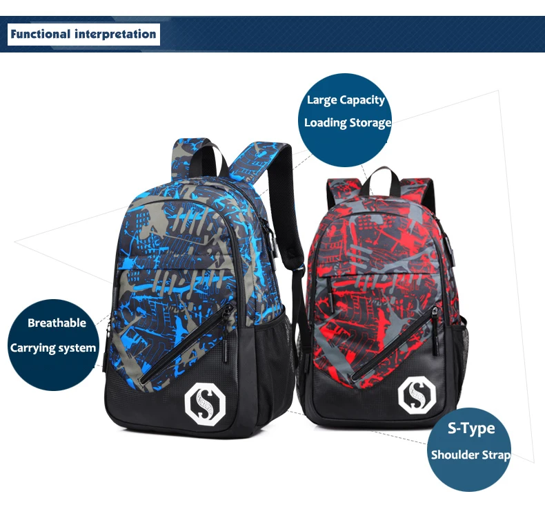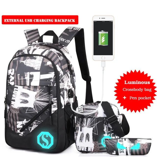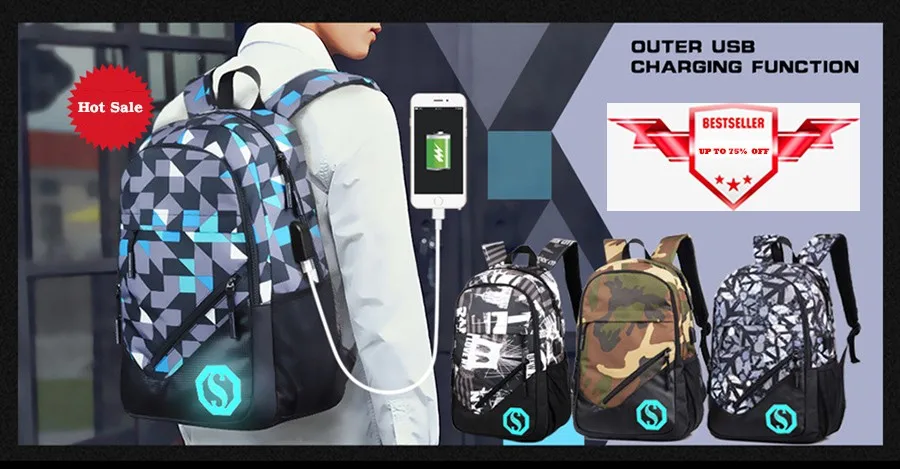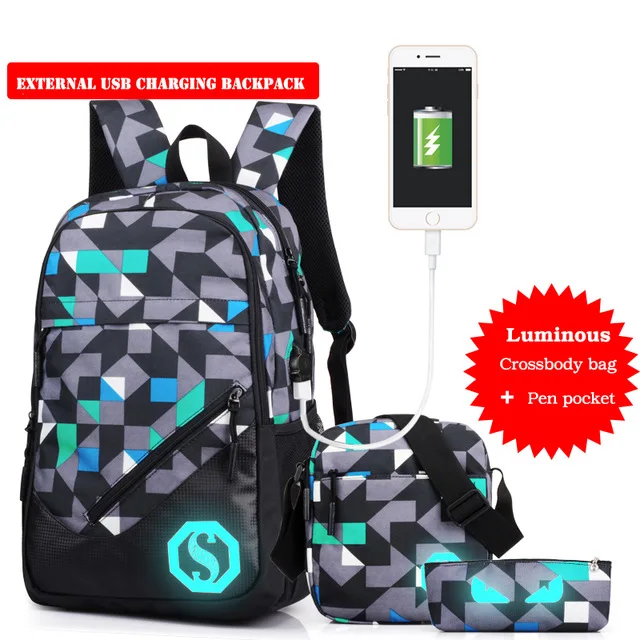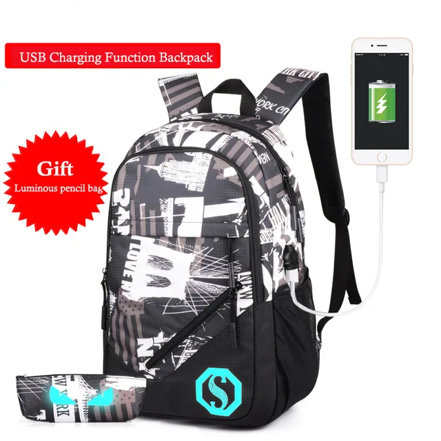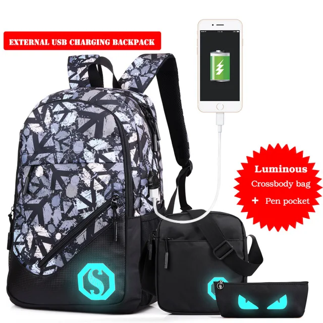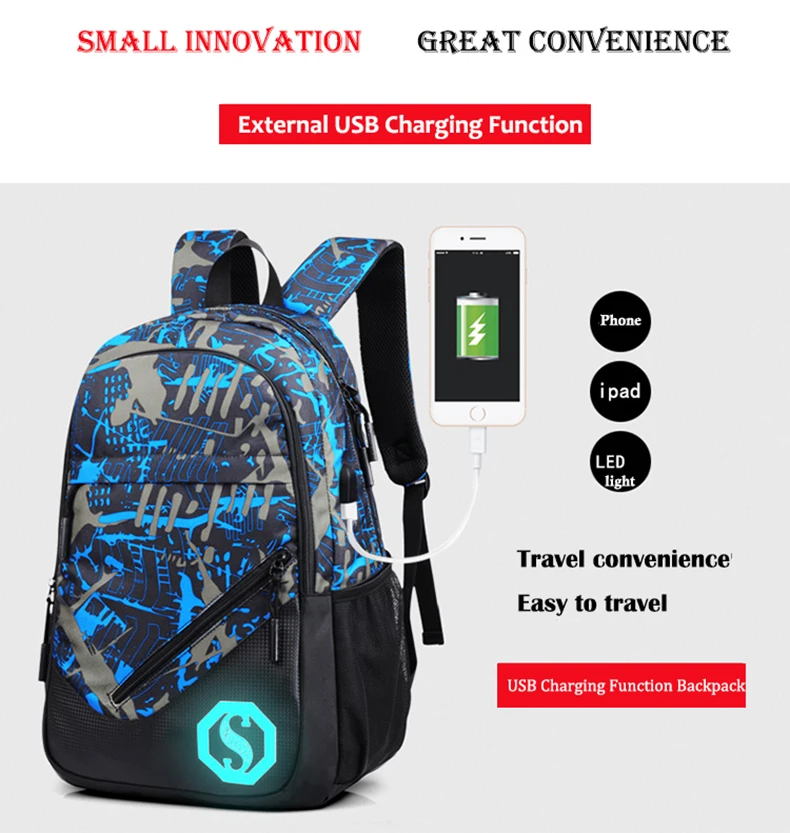 Model Number:USB Charging Luminous Backpacks Men Male Boy Mochila Rucksack rukzaki