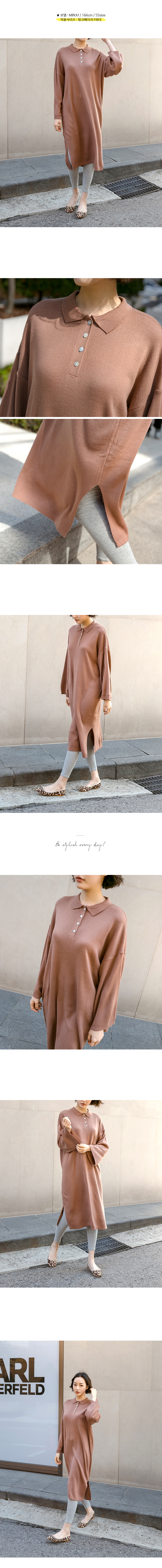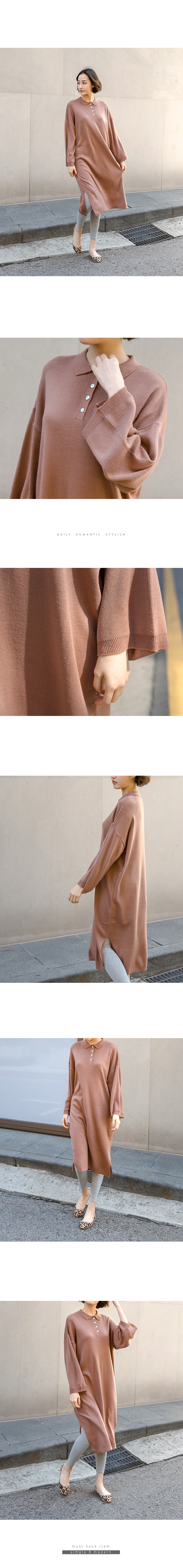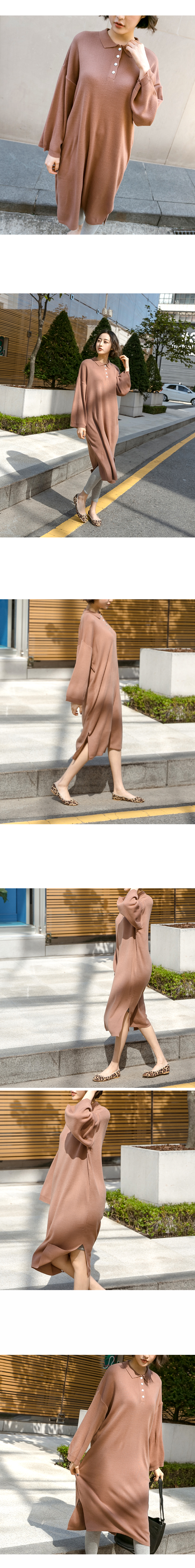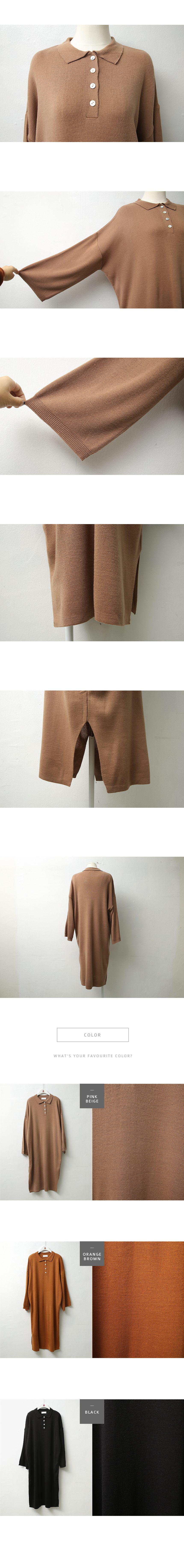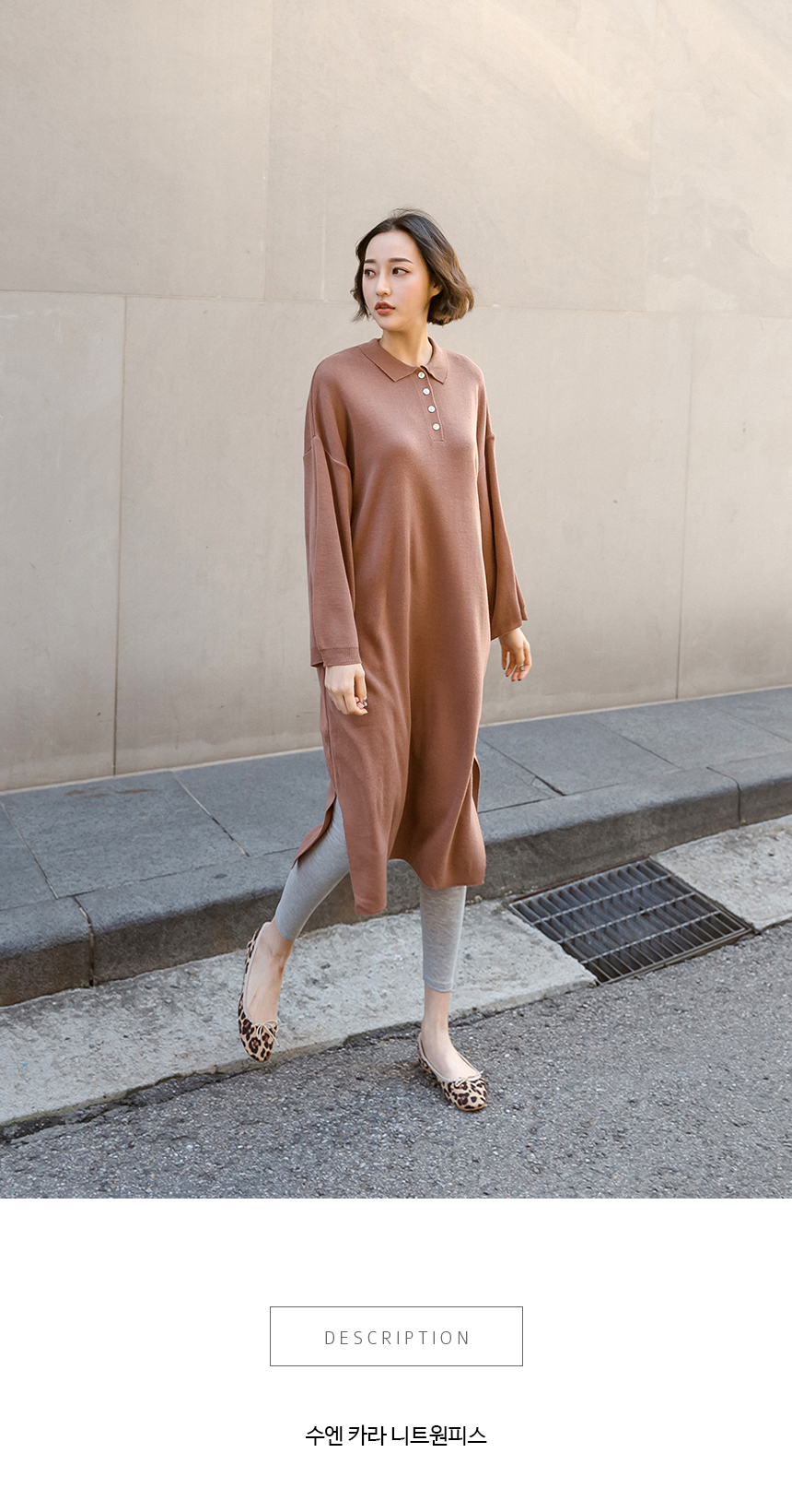 전체적으로 여유 있고 편안한 무드에 단정한 카라와 버튼 디테일로 세련된 스타일이 데일리룩, 오피스룩으로도 좋은 니트 원피스예요.