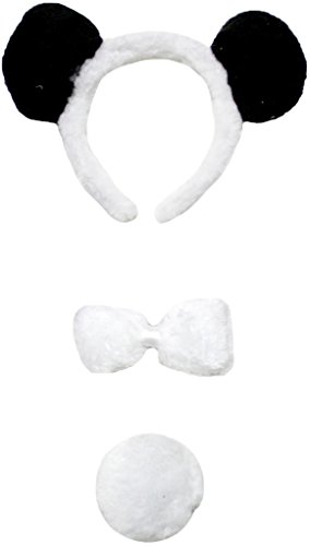 -. Feature : Product includes: a headband, a bow tie, a tail. / Lightweight material. / By polyester and cotton. / Fixed size for unisex children. / Panda costume for children.