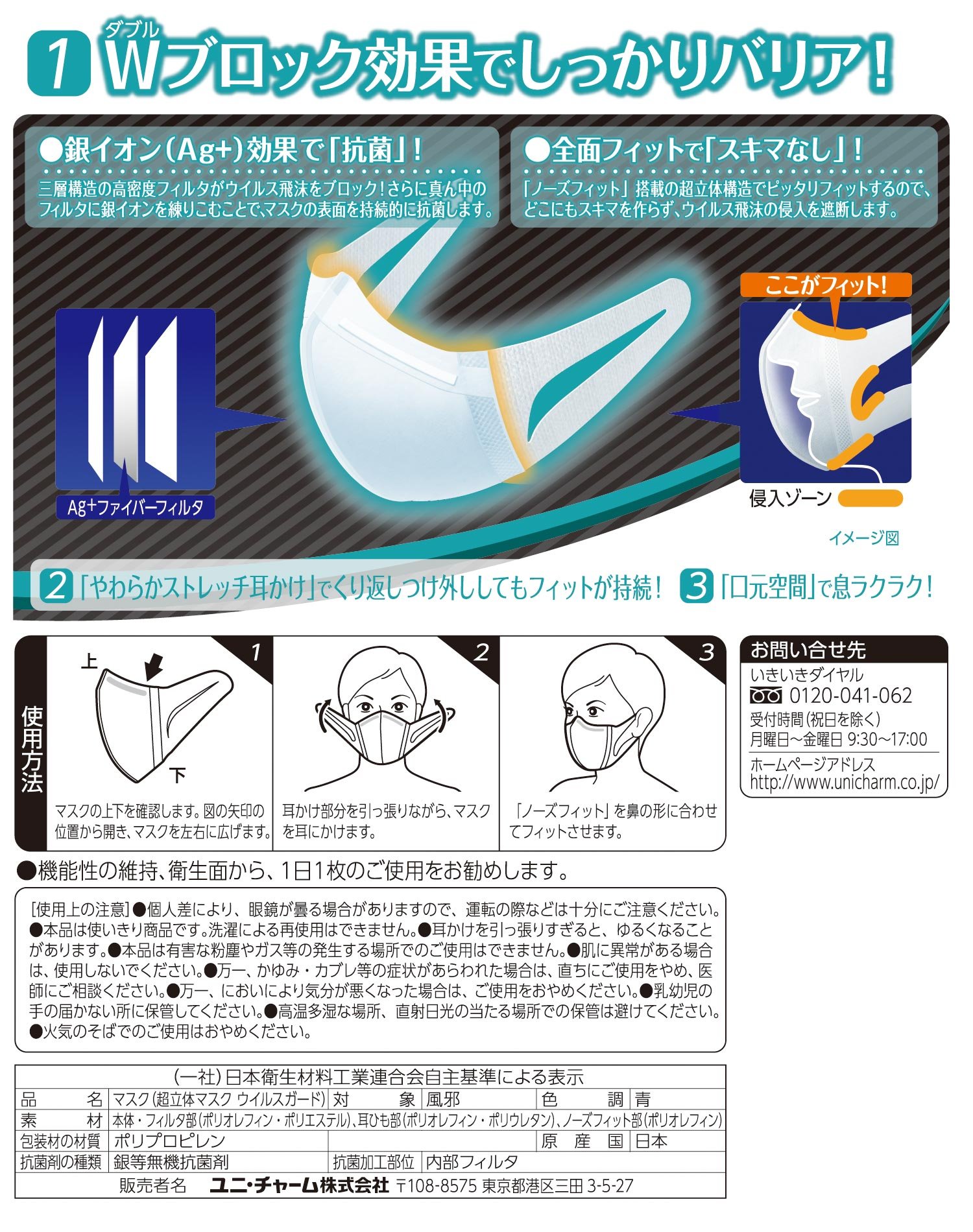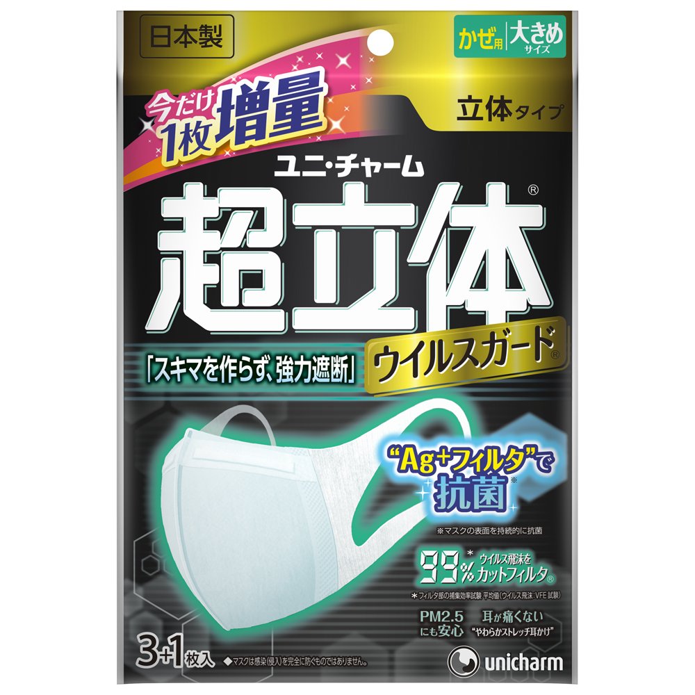 Japan Facemask - (Made in Japan PM2.5 corresponding) supersolid mask virus guard Ag + filter antibacterial large size 3 + 1 pieces (unicharm) *AF27*