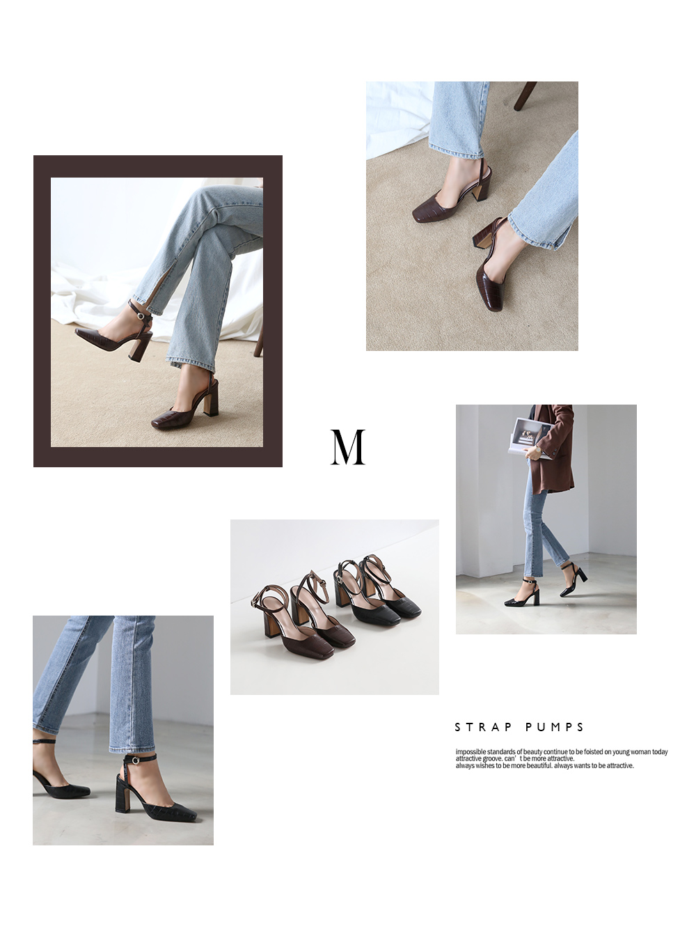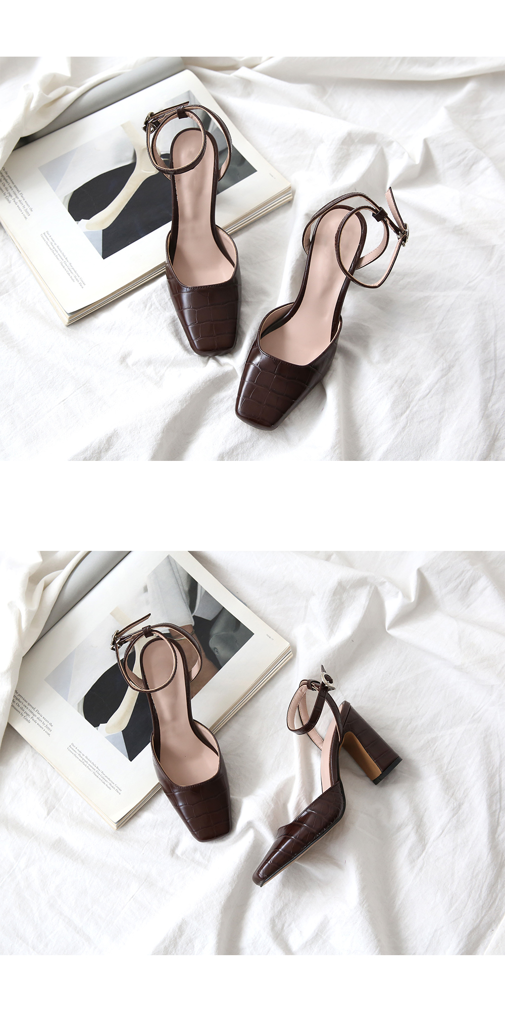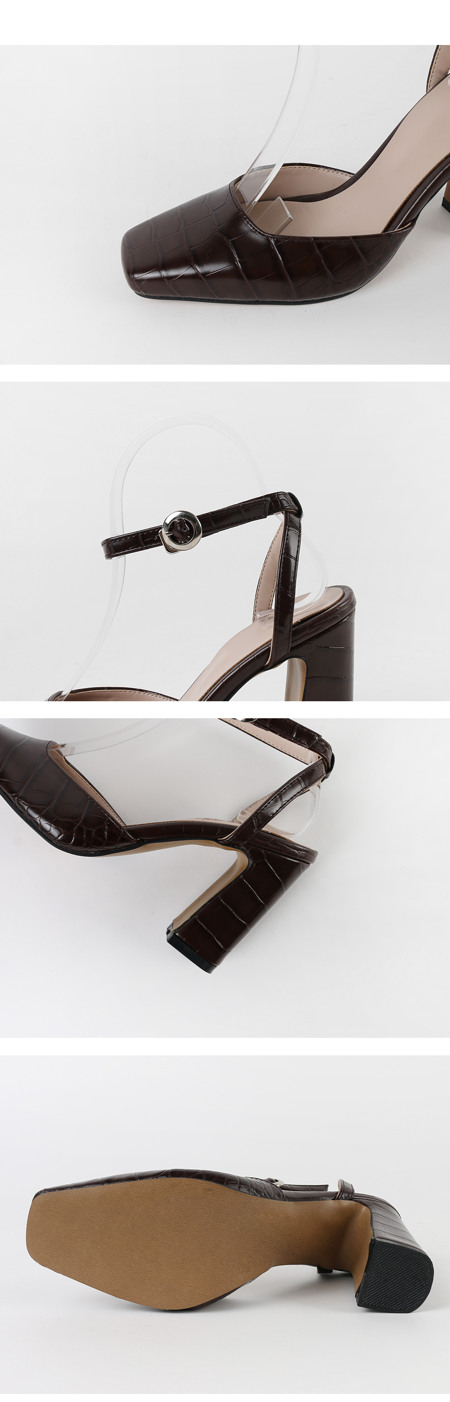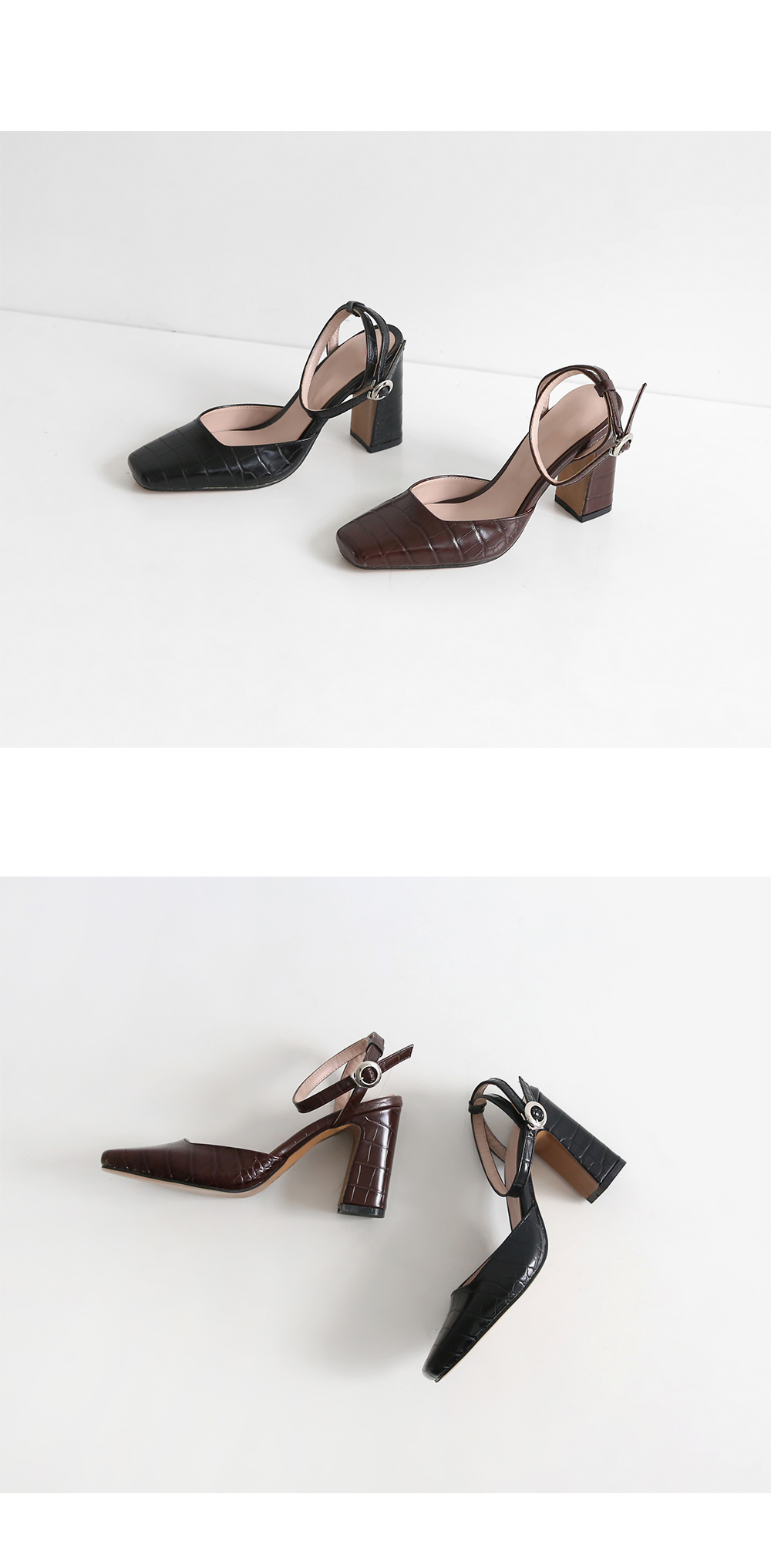 DETAILS - 소재 : 인조소가죽 - 컬러 : brown,black - 피팅감 : 정사이즈 / 무게 : 보통인편 - 착화감 : 안정감있는 굽라인으로 편안한 착화감이에요 - 모델피팅 : 230