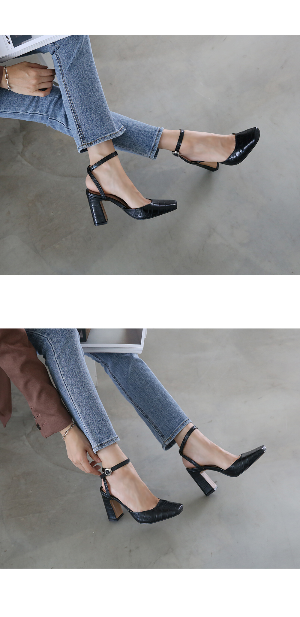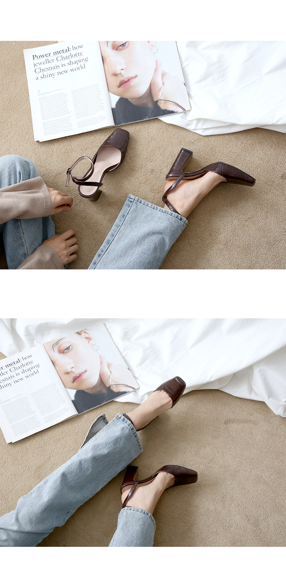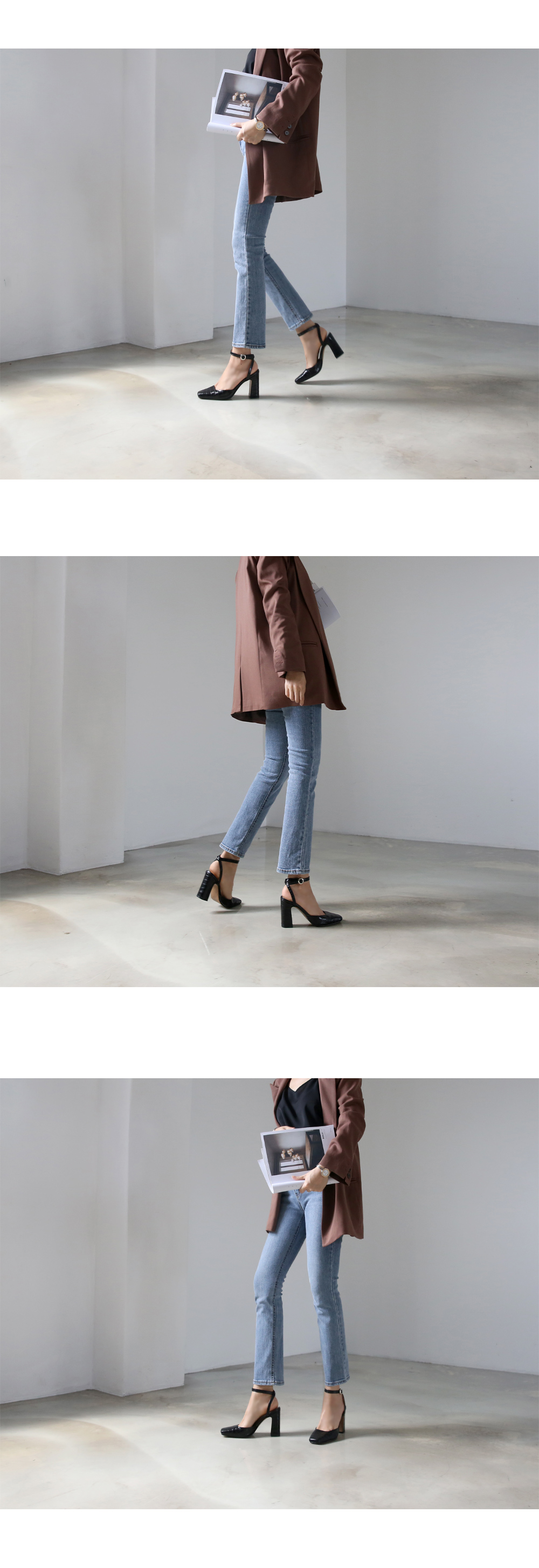 차분한 컬러톤은 데일리룩의 완성도를 높여주고 청키한 굽은 안정적인 착화감을 보여줍니다.