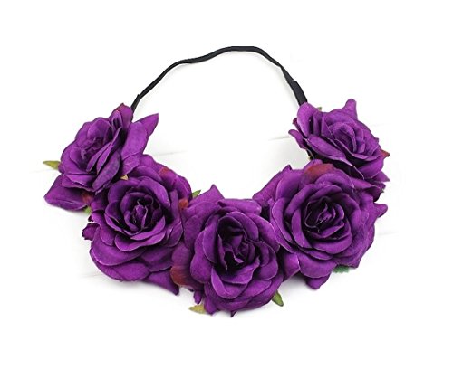 Floral Fall Elastic Coffee Big Rose Flower Headband Hair Wreath Halo Crown F-37