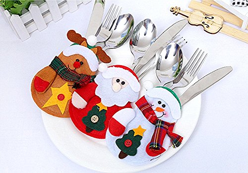 Alimitopia 3pcs Tableware Holder Bag with Christmas Cartoon Characters Styling,Flatware Pockets for Xmas Dining Decorations