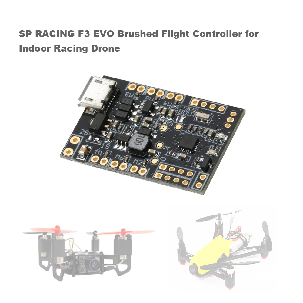 This brand new SP RACING F3 EVO Brush Flight Controller is developed on the basis of F3 EVO SP RACING, which is based on the SP Racing F3 EVO firmware. This mini brush flight controller is designed for mini racing drone, can be applied on both quadcopter and hexacopter.