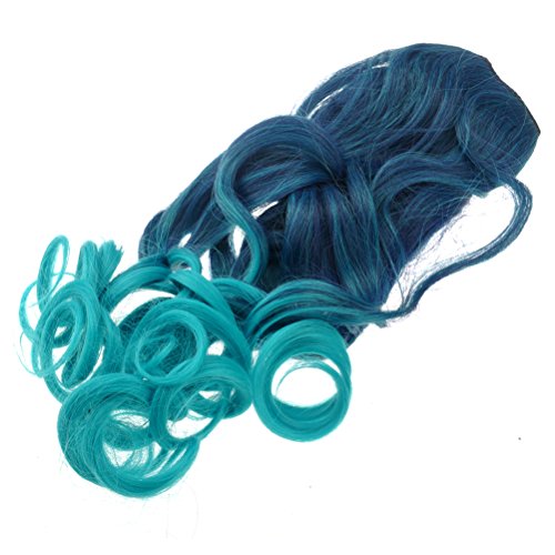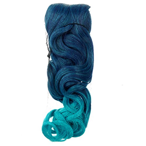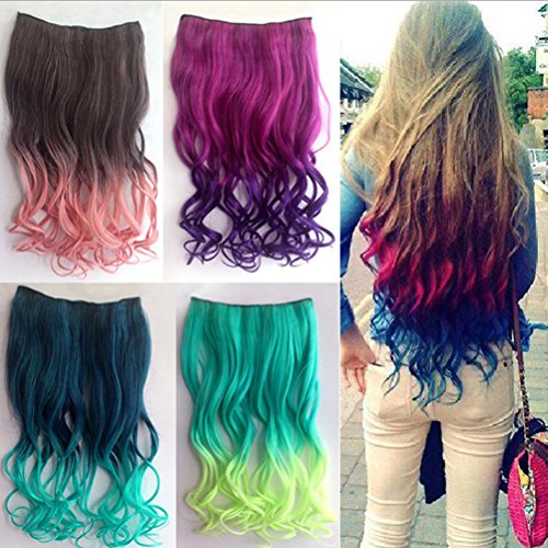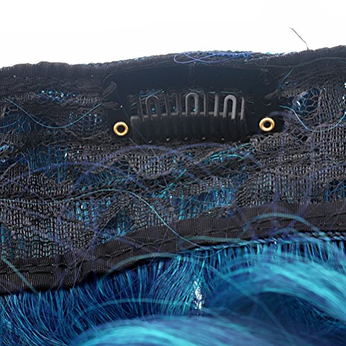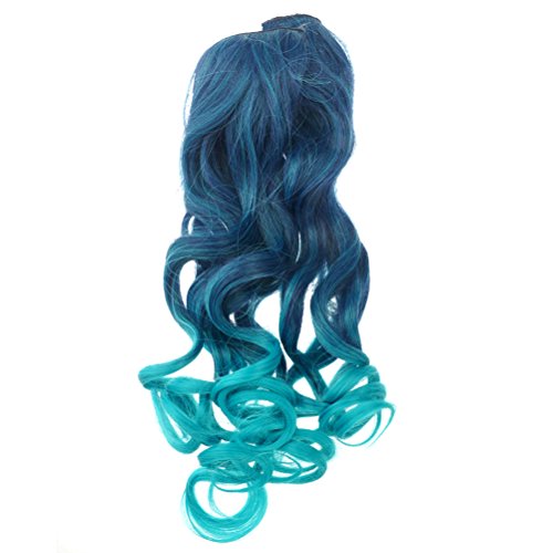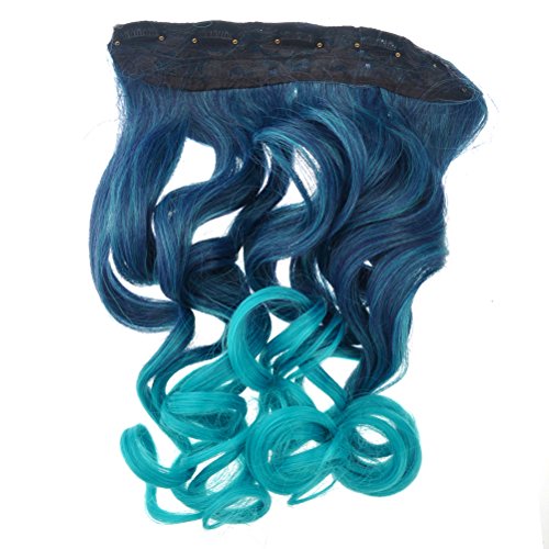 Package Including1 * Cool One-piece 2-Color Gradient Long Curly Wavy Clip-on Magic Wig Synthetic Hairpiece (Lake Blue+Peacock Blue)