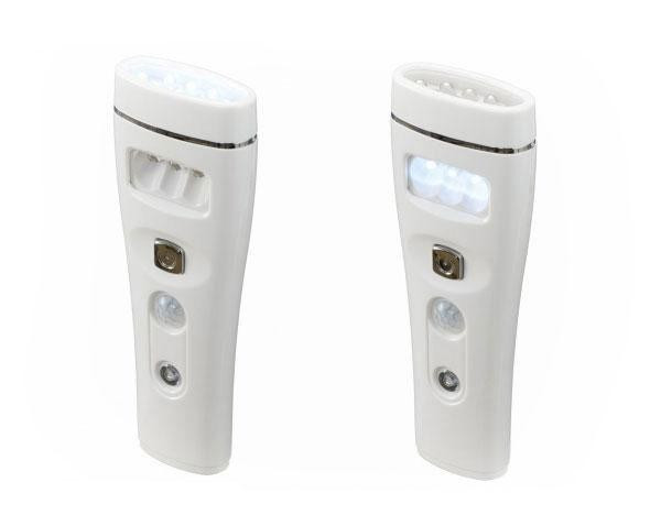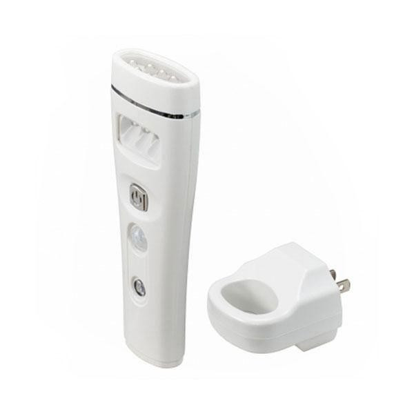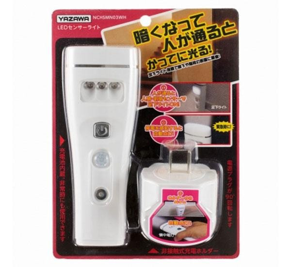 | 仕様 | 充電時間:約24時間(満充電) 連続使用時間:TOP 約3時間(満充電時)、SIDE 約2時間(満充電時) ※電池性能や使用条件により変化。 灯数:TOP 8灯(交換不可)、SIDE 3灯(交換不可) 定格電圧:AC100V 周波数:50/60Hz 定格消費電力:約0.8W 検知方法:人感・明暗センサー 充放電可能回数:約500回 光源寿命:約40000時間 |