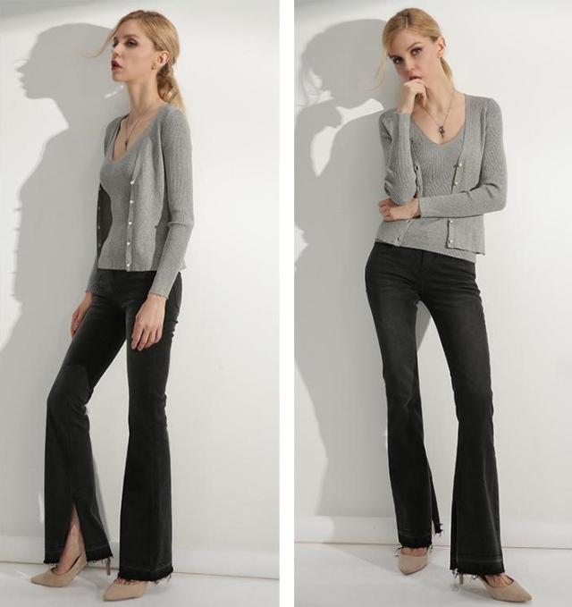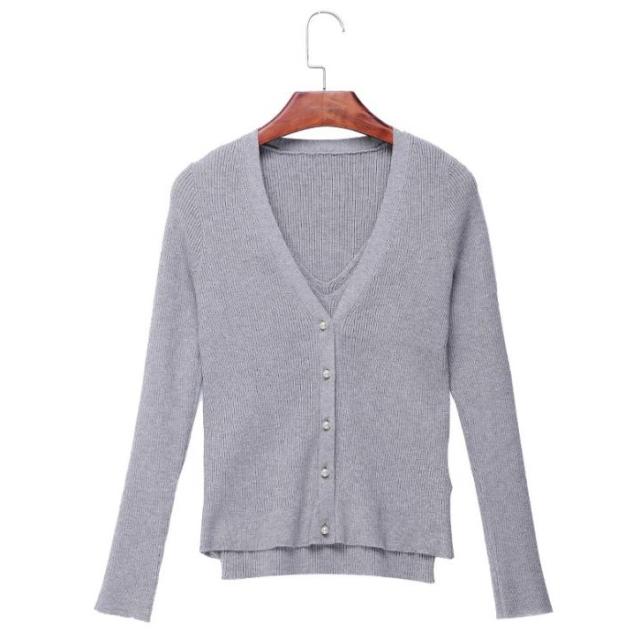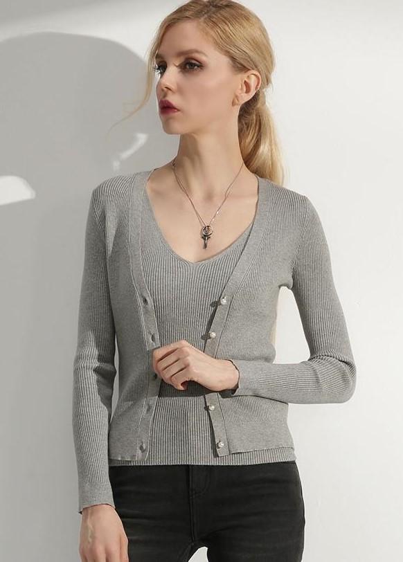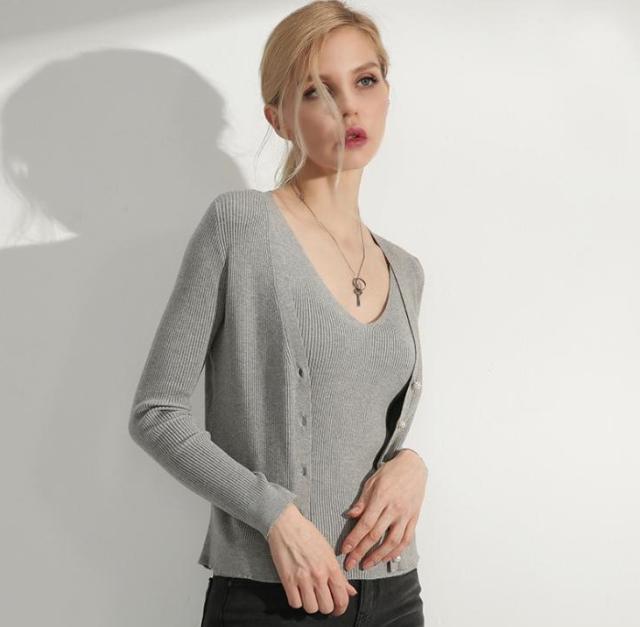 ・キーワード:女子会 オフィス用 フェミニン グレー ツーピンス キレイ 大人可愛い 長袖 トップス ニット 2018年秋トレンド ノースリブ カーディガン