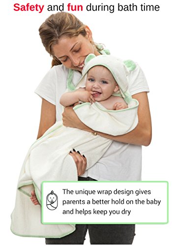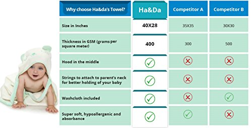 Wrap Your Baby in Cloud-Like Softness! Every time you bathe your bundle of joy, it's an opportunity for bonding and playtime. Unfortunately, it's virtually impossible to prevent the towel from getting damp with water when you attempt to lift your child from the tub. The Hooded Baby Towel from HaDa helps make bath time easier than ever! Our unique wrap design ties comfortably around the parent's neck, leaving both hands free to pick up your child. Not only is this more practical than a traditional towel, but it's also safer as it gives parents a better hold on the baby and helps keep you dry. Super soft and incredibly absorbent, this 40x28 towel fits infants and toddlers aged 0-3 years. With an irresistible bear hood, kids will look cuter than ever! As they grow, they'll love wearing it as a superhero cape after the bath or shower. And because it's machine washable and features unisex colors, it makes a thoughtful baby shower gift for any soon-to- be parent. The team at HaDa cares about your baby's comfort just as much as you do! We use a special blend of bamboo and cotton to ensure our organic towels are antibacterial and hypoallergenic. And as a special added bonus, you'll receive a free eBook for shopping with us! Why Choose Our Hooded Towels? - Soft and absorbent - Unique wraparound design - Great baby shower gift - Free eBook with purchase - Organic and hypoallergenic