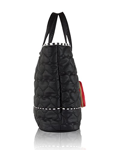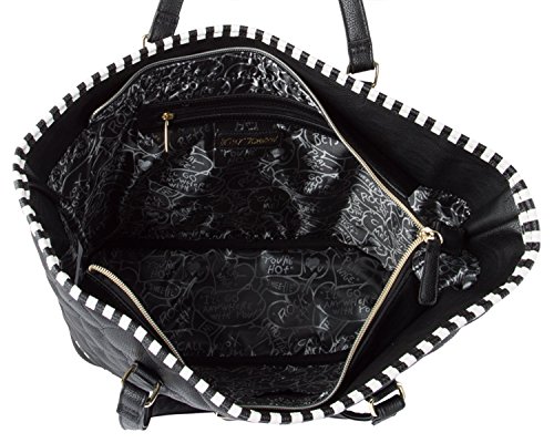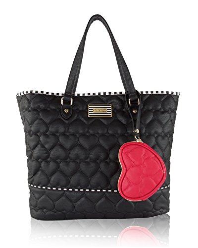 -. Brand : Betsey Johnson -. Department : womens -. Feature : Top zipper closure, Dual top flat handles with 8" drop / PVC be mine heart quilted body, stripe trimming, Betsey Johnson Logo plaque / Includes Hanging removable quilted Red heart dangle Coin wristlet purse / Opens to fully lined signature interior with 2 back wall slip pockets and 1 zipper pocket / Tote Bag Measures: 14" x 13" x 5" (WxHxD) -. Model : BB16010 -. ProductGroup : Shoes -. ProductTypeName : LAGE -. Size : One Size -. Title : Betsey Johnson 2 PC Set 2 in One Be Mine Tote Purse Bag Handbag