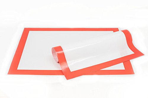Premium 2 Pack Red Silicone Baking Mats, Half Sheets, Non-Stick Professional Grade, FDA Approved, Easy to Clean and Reusable, Heat Resistant Liners for Cookie Sheets, Pastry, Bread Making, & more