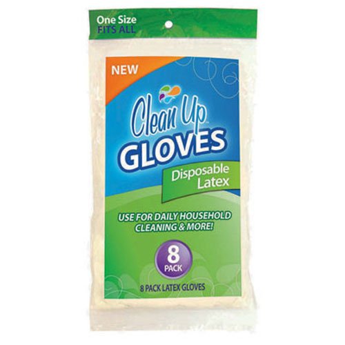 Product DescriptionClean Up Disposable Latex Gloves protect your hands from the daily use of harsh detergents and household cleaners. One size fits all.0