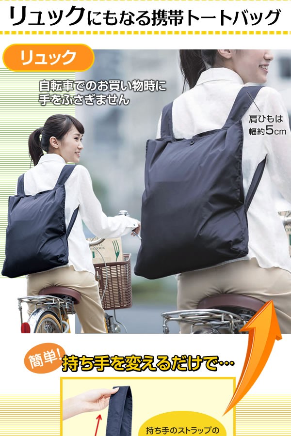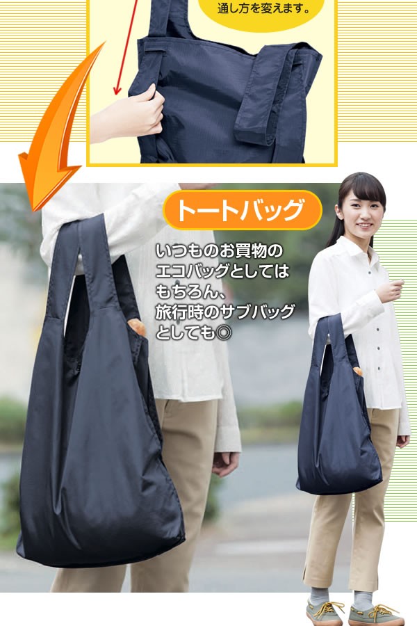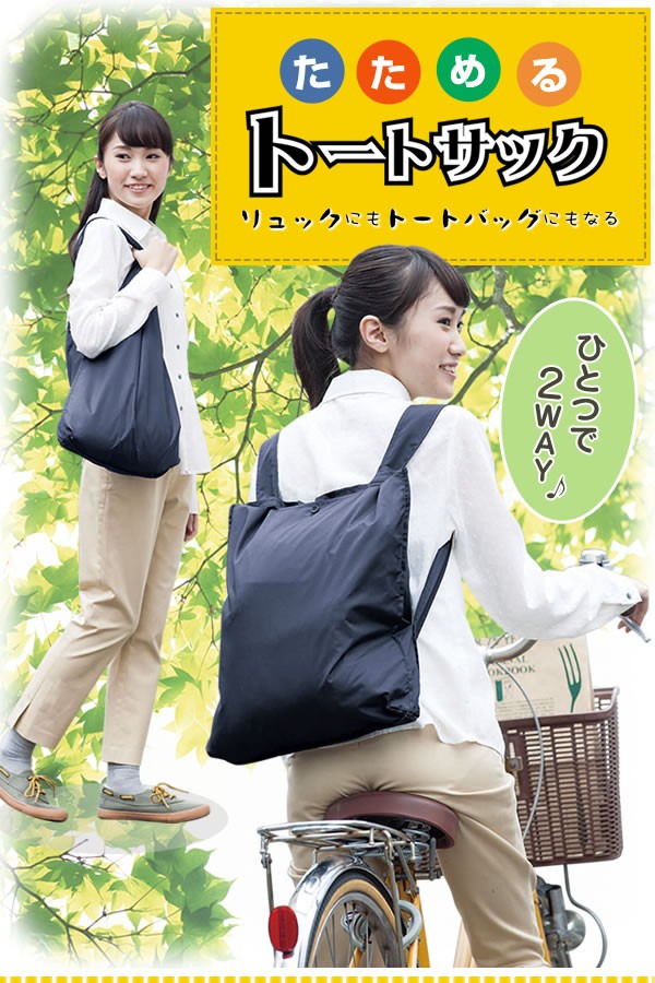 | <h1>リュックにもなるトートバッグ。薄くて丈夫なリップストップナイロン素材。たたんでコンパクトになるからエコバッグとしても旅行時のサブバッグとして携帯しても邪魔にならない。撥水加工しているので急な雨でも安心。お買い物で両手がふさがってしまったとき、さっとこのたためるトートサックをとりだして使っちゃおう。トート/リュック/たたんで/コンパクト/たためる/旅行/エコバッグ/買い物/丈夫/両手/おしゃれ/かわいい/リップストップナイロン/アウトドア/2WAY</h1> |