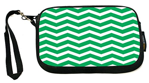 -. Title : UKBK Chunky Chevron Green Zig zag Neoprene Clutch Wristlet