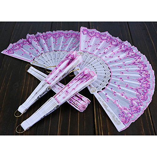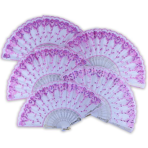 - WHATS INCLUDED? Each order includes five (5) Just Artifacts® brand 9" Decorative White Silk Folding Hand Fans with white handle and baby pink sequins