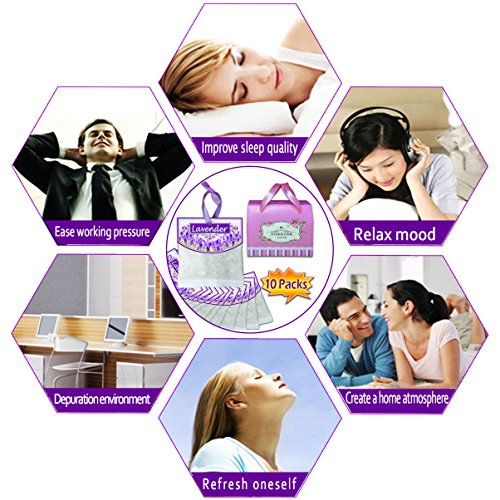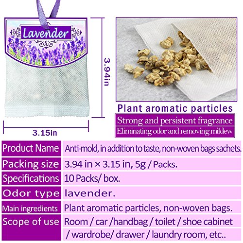 - 2. Remove the smell and purifying air:Lavender sachet can be hung in the closet, shelf, shoe cabinet, you effectively protect the items, prevent mildew and Pest control, Or put it in the car, pillow, and drawers, luggage boxes, or on the handbag, easy to carry.