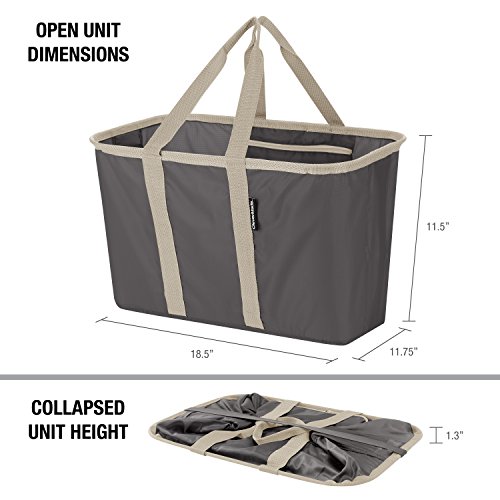 Studio : Clevermade Publisher : Clevermade Binding : Tools Home Improvement Product Description The CleverMade SnapBasket Collapsible Shopping Tote is a smart, space-saving solution to simplify all of your shopping trips and day-to-day tasks. It's designed with rip-stop fabric for extreme durability and water resistance. This versatile tote snaps open with ease, and features a zippered stash pocket for valuables. The flop-free structured design means no more spilled groceries. The CleverMade SnapBasket combines packing, transport and storage into one reusable, collapsible tote. This all-purpose tote can also increase the ease and efficiency of daily tasks and storage. Measuring 18.5" L x 11.75" W x 11.5" H, it holds 30 liters (8 gallons) by volume, with a maximum load capacity of 25 pounds. Stability feet prevent tipping and 2 carry handles allow for steady and balanced transportation. This sturdy tote not only wipes clean, but collapses flat to 1.3" for compact storage. 0