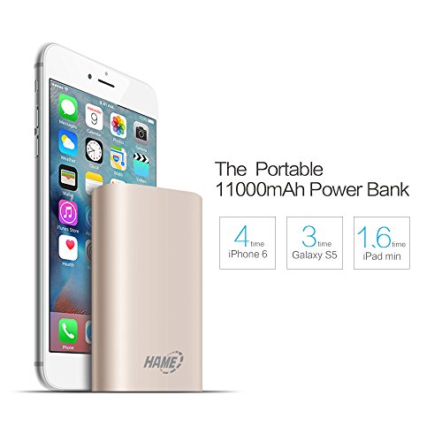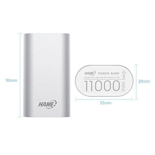 -. Binding : Wireless Phone Accessory -. Brand : Hame -. Feature : Fastest charge:Special PMIC Technology.Detects your device to deliver its fastest possible charge speed up to 2 amps. / Ultra-High Capacity: Charges the iPad Air once, the Galaxy S5 two and a half times, the iPhone 5s four and a half times and other smartphones multiple times. / Most Compact: Strong, sleek & beautiful design featuring a 4-LED power indicator. / Recharges in about 6 hours with a 2 amp adapter (not included) and the included Micro USB cable. / What You Get: HAME? H16 Power Bank, Micro USB cable, manual, and our 12-month warranty and friendly customer service. -. Label : HAME -. Manufacturer : HAME -. MPN : HAME-H16 -. PackageQuantity : 1 -. PartNumber : HAME-H16 -. ProductGroup : Wireless -. ProductTypeName : WIRELESS_ACCESSORY -. Publisher : HAME -. Studio : HAME -. Title : Hame 11000mah Ultra Compact External Battery Portable USB Charger Power Bank,for Iphone 6 5s 5c 5, Ipad Air Mini, Galaxy S5 S4, Tab 2, Note 3 4, Lg G3, Nexus, HTC One M8, Moto X