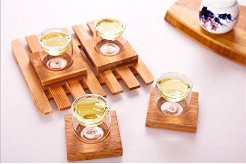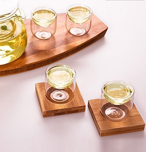iRSE Glass Teaset is a?modern and sophisticated design, created specifically for the tea connoisseur. Our teeaset is well designed?and a must have for any tea drinker. Caution: The tea?cups may contain hot water, careful?when use and keep away from children when filled with hot water. Safe to use in the microwave, with out the bamboo tray?pop it in the microwave to boil your water Features:? 1. Easy to clean, Dishwasher safe, the bamboo tray is water proof too 2.?Easy to hold and pour tea into your cup, the double wall glass?make it so easy to hold the cups and pour water. 3.?Looks great and modern with all transparent glass and the elegant bomboo tray for greate tea serving 4. Great looking small cups for a nice quite tea enjoyment, the small cups will make any tea drinker?value the taste of the tea more than before.? 5. Great taste for your tea, no stainless steel or plastic taste into your tea anymore. Package Includes: * 4 x Glass 2?oz?tea shots cups * 4 Bottom?Bamboo Tray for?the cups iRSE promise an enjoyable experience using our tea infuser tea cups, and we strive to keep our customers happy and satisfied, please get back to us for any question, problems or inquiries. 0 |