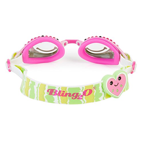 Swimming Goggles For Girls - Wacky Watermelon Crimson Sweet Classic Pink & Green Swim Goggles By Bling2o