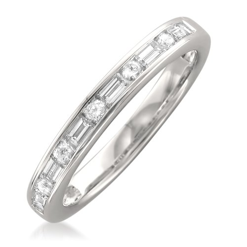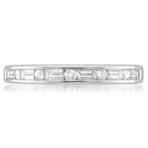 -. Title : 14k White Gold Baguette & Round Diamond Bridal Wedding Band Ring (1/2 cttw, H-I, SI1-SI2)