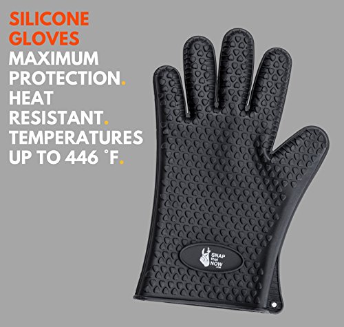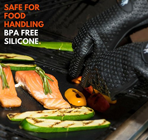 - INDUSTRIAL GRADE MATERIALS Each of our premium products are all FDA tested under modern manufacturing. Our silicone bbq gloves for cooking can handle temperatures up to 446°F, making them great for the kitchen or outdoors. The grill mitts have a no-slip design to prevent any cooking incidents. The meat claws shredder duo is so universal, they can also be used to flip, pick up, and serve meat. The grill mats (rated to 500°F) are durable, non-stick, and waterproof making this combo a must-have.
