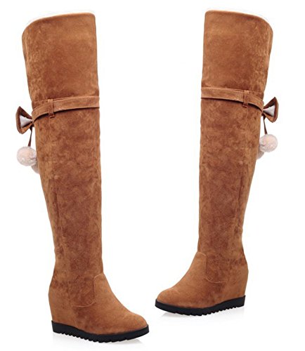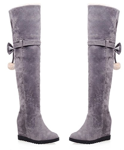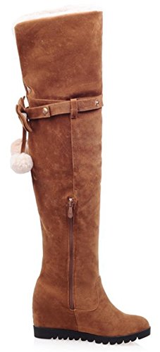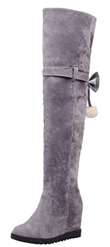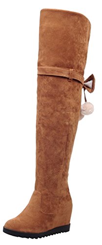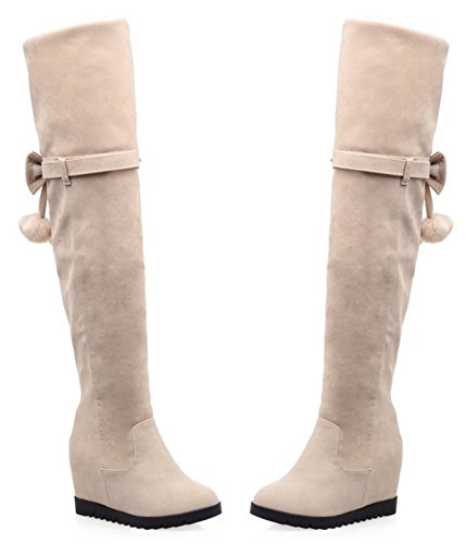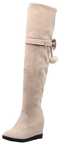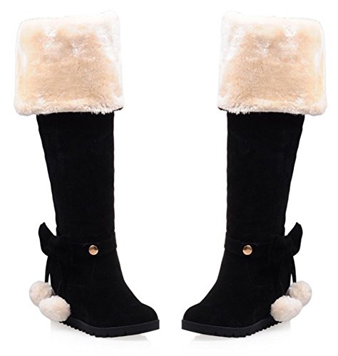 Binding : Apparel Product Description The cool weather is coming. And do you need to change the style of your shoes? If you have this idea, why not choose the ideal shoes in our shop? This pair of boots is for women, girls, young ladies and office workers. You will look sexy and chic when wearing them. The heels measure 3.1 inches. You will look slimmer and slender in their hidden wedge heels. So you will not feel too tired when walking with them. The pair of shoes features knee high and inside zipper. The design of round toe and pom-poms will make you look cool. The sole is made of good rubber. You will feel comfortable in their soft bottom. They are of high quality and durable. Come on and take them away! 0