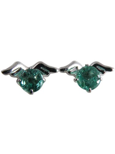 -. Title : ジュエリーコトブキ 5月 誕生石 幸せの天使の羽 エメラルド エンジェル ピアス K14 ホワイト ゴールド (お磨きクロス付ギフトセット)